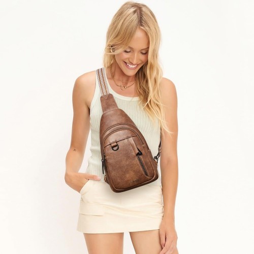 7L Sling Bag for Women Men Leather Small Sling Backpack Daypack Anti Theft Fanny Pack Crossbody Purse Travel