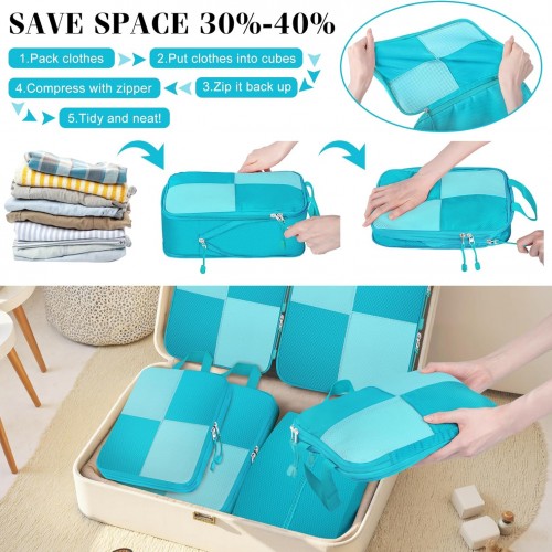 8 Set Compression Packing Cubes Travel, Lightweight Expandable Travel Cubes Suitcase Organizer for Carry On Luggage Suitcase, Turquoise