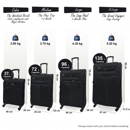 • Medium: 68 x 47.5 x 28 cm (Expands to 33 cm) | Weight: 3.8 kg | Capacity: 90L