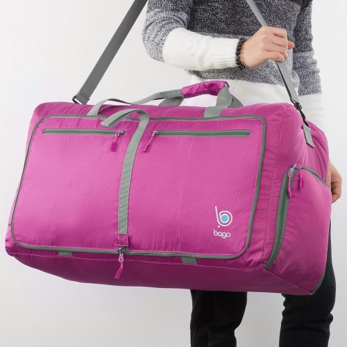 Bago Large Foldable Duffel Bags for Traveling Women & Men – 80L Packable Duffle Bag for Travel with Shoe Compartment – Water Repellant, Heavy Duty, Lightweight Folding & Collapsible (Pink)