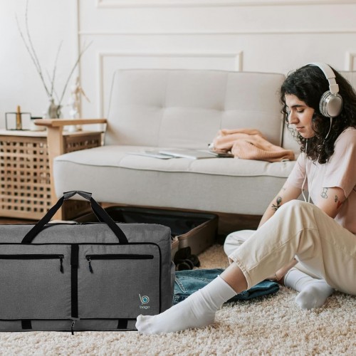 Bago Large Foldable Duffel Bags for Traveling Women & Men – 80L Packable Duffle Bag for Travel with Shoe Compartment – Water Repellant, Heavy Duty, Lightweight Folding & Collapsible (SnowBlack)