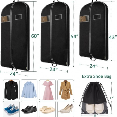 BALEINE 1PK Heavy Duty Garment Bag with Shoe Storage Travel Bag for Dresses, Suit, Coats Travel Essential (54″, Black)
