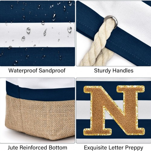 Becokan Beach Bag Initial Beach Tote with Makeup Bag for Travel Work Storage Personalized Birthday Gifts for Women Her