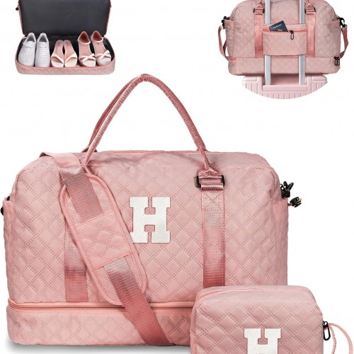 Birthday Gifts for 11 12 13 14 15 16 17 18 Year Old Girls Gifts-Initial Duffle Bag with Shoe Compartment, Letter Travel Bag with Makeup Bag,Birthday Gift GraduatIion Gifts for Her (Letter T)