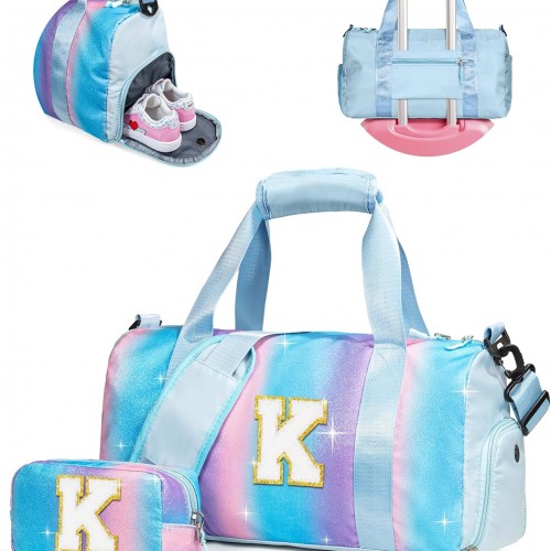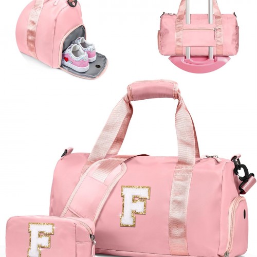 Birthday Gifts for 3 4 5 6 7 8 9 10 11 12 Year Old Girls-Girl Gym Bag with Shoe Compartment, Kid Personalized Weekender Ballet Bags, Initial Travel Tote with Makeup Pouch (Letter B)