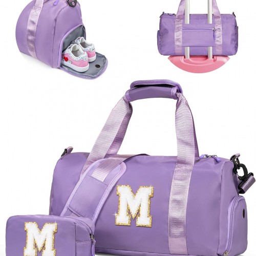 Birthday Gifts for 3 4 5 6 7 8 9 10 11 12 Year Old Girls-Girl Gym Bag with Shoe Compartment, Kid Personalized Weekender Dance Bags, Initial Travel Tote with Makeup Pouch (Letter B)