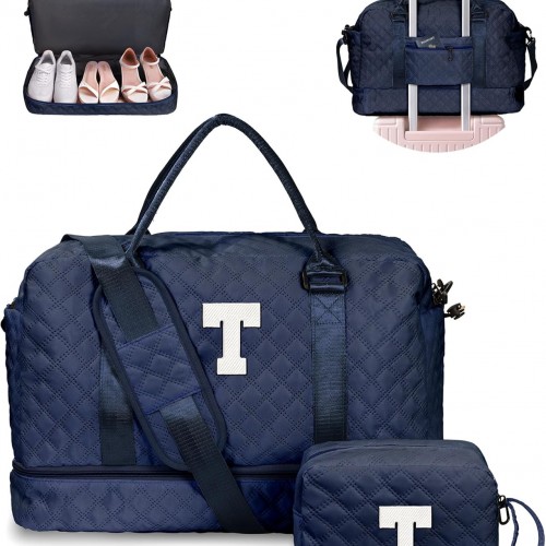 Birthday Gifts-for Women-Initial Duffle Bag with Shoe Compartment, Personalized Weekender Bag, Monogram Overnight Bag, Letter Travel Bag with Makeup Bag,Friend Wife Birthday Gift (Letter C)