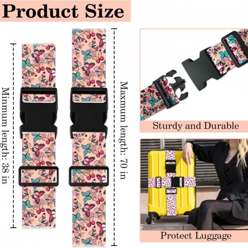 Butterfly Luggage Straps for Suitcases TSA Approved, Luggage Identifiers for Suitcase, Adjustable Suitcase Strap for Baggage Security with Cute Patten, Travel Necessary Accessories (2Pack)