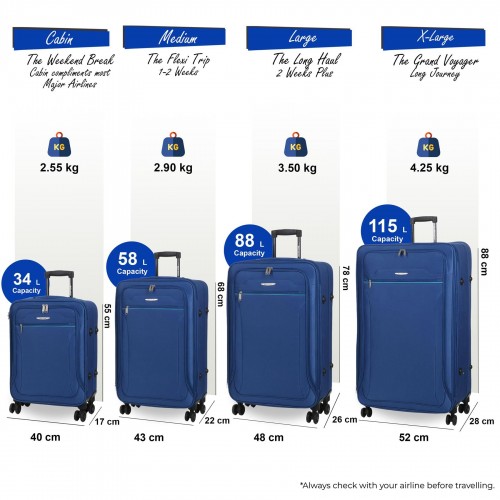 Cinderford Set of 4 Soft Shell Suitcase in Blue
