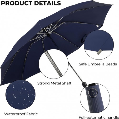 Compact Inverted Travel Umbrella, Automatic Open Close, 9-Rib 46 Inch Windproof Umbrella, Waterproof UPF 50+, Portable Umbrellas for Men, Women, Travel, and Daily Use