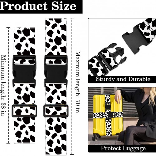 Cow Print Luggage Straps for Suitcases TSA Approved, Luggage Identifiers for Suitcase, Adjustable Suitcase Strap for Baggage Security with Cute Patten, Travel Necessary Accessories