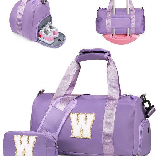 Cute Preppy Gifts for Girls-Girl Gym Bag with Shoe Compartment, Kid Personalized Weekender Overnight Bags, Initial Travel Tote with Makeup Pouch, Chenille Gift for Teen (Letter D)