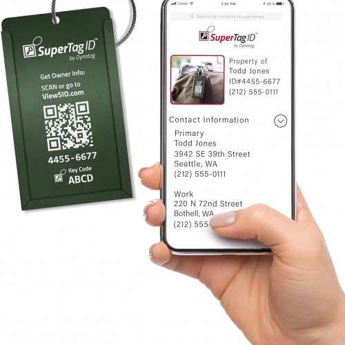 Dynotag® Web Enabled Smart Aluminum Convertible Luggage ID Tag + Braided Steel Loop, with DynoIQ™ & Lifetime Recovery Service (Emerald Green)