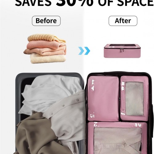 ECOHUB 7 Set Packing Cubes Tear-Resistant Luggage Packing Organizers with Number Icon for Travel Accessories Luggage Suitcase Machine Washable Packing Cubes (Pink)