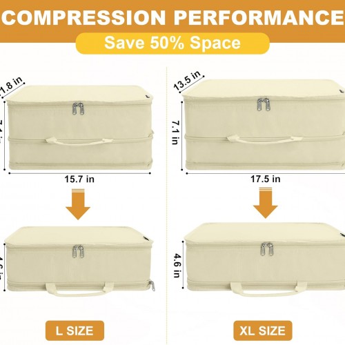 Extra Large Compression Packing Cubes for Travel Essentials, 2 Set Expandable Travel Cubes for Packing Bags Suitcase Organizer, Beige