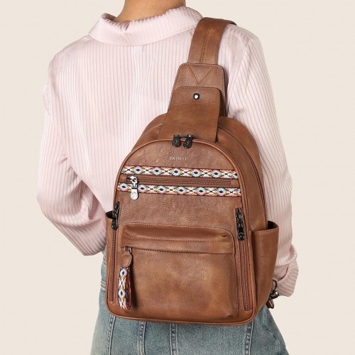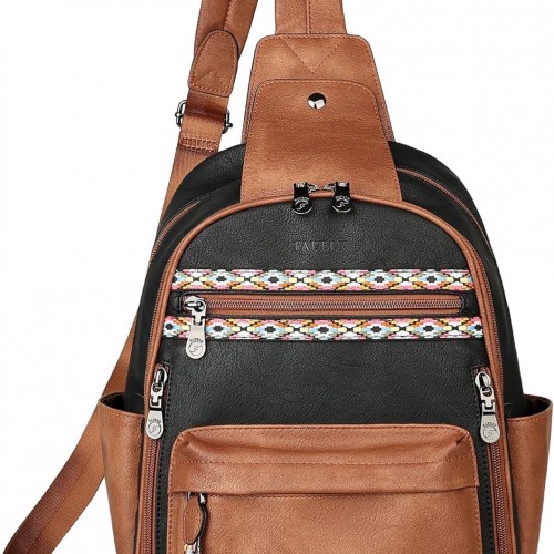 FADEON Large Sling Bag for Women, Leather Crossbody Purse Designer Anti Theft Sling Backpack, RFID Fanny Packs for Travel