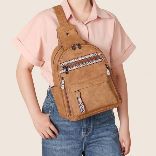 FADEON Large Sling Bag for Women, Leather Crossbody Purse Designer Anti Theft Sling Backpack, RFID Fanny Packs for Travel