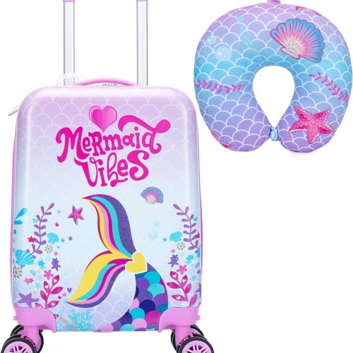 FAHKNS Ride on Suitcase luggage with Seat for Kids,21 inch Hardside Carry on Luggage with Wheels for Travel,2-in-1 Case & Baby Stroller,White