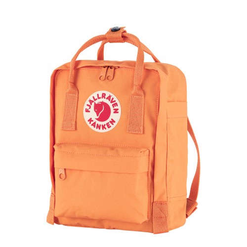 The Fjallraven Kanken Mini in Sunset Orange backpack is ideal for children or adults looking for a smaller bag, thank to the adjustable straps. Made from Fjallraven’s Vinylon-F fabric the Kanken Mini backpack is liquid and dirt resistant, built to stand the test of time! Main features of the Fjallraven Kanken Mini backpack are the spacious zip close main compartment containing a removable seat pad for tired legs, a zip close front pocket, two flat side pockets and of course the brands classic Fjallraven reflector logo on the front to finish off.