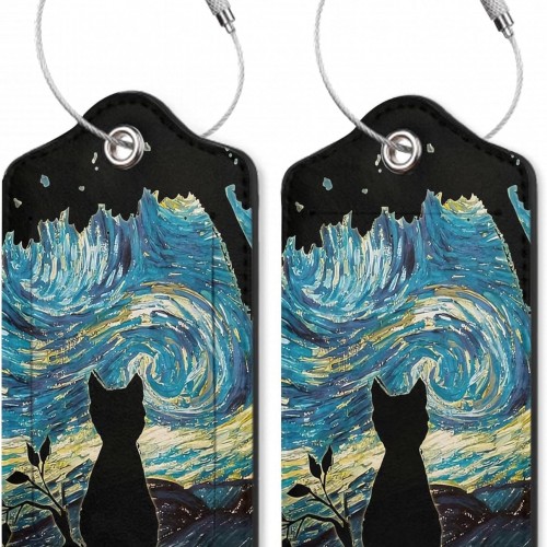 Funny Giraffe 2 Pack Luggage Tag for Suitcase, Cute Unique Leather Bag Tags Identifiers Privacy Cover ID Label with Durable Steel Loop for Women Men Kids Girls Travel