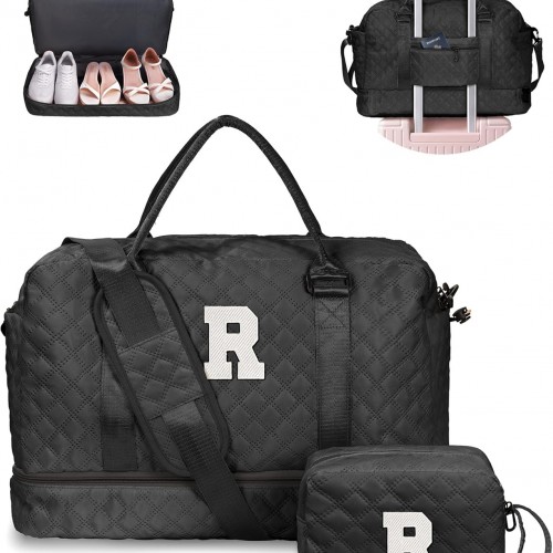 Gift Ideas for Woman, Gifts for Women-Initial Travel Bag with Shoe Compartment, Personalized Weekender Bag, Monogram Overnight Bag for Women, Letter Travel Bag with Makeup Bag (Letter P)