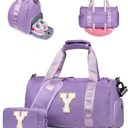 Gifts for 4 5 6 7 8 9 10 11 Year Old Girls-Girl Gym Bag with Shoe Compartment, Kid Personalized Weekender Bymnastic Bags, Initial Travel Tote with Makeup Pouch, Dance Bag Gift (Letter A)