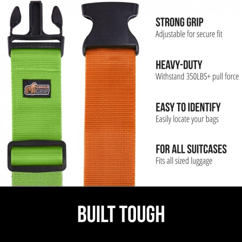 GORILLA GRIP Heavy Duty 8 Pack Adjustable Luggage Straps for Suitcases, Easy to Identify Travel Belt Connector Holds Suitcase Together, Extends Life of Bag, Strap Connects Two Bags, Multicolor
