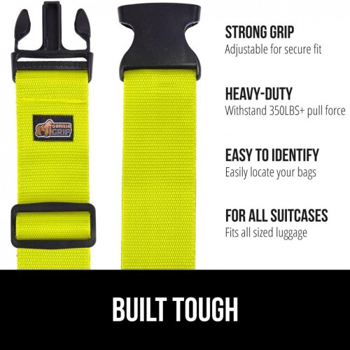 GORILLA GRIP Heavy Duty Adjustable Luggage Straps for Suitcases, Easy to Identify Travel Belt Connector Holds Suitcase Together, Extends Life of Bag, Strap Connects Two Bags, Accessories 2 Pack Yellow