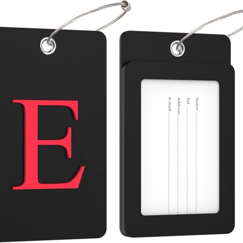 Gostwo 2 Pack Luggage Tags for Suitcases, 26 Initial Letter Travel Luggage Baggage Identification Labels ID Tag Fully Bendable Tags with Stainless Steel Loop (Black) (Letter E)