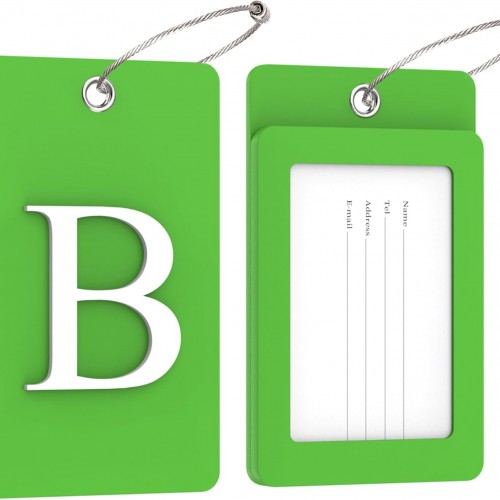 Gostwo 2 Pack Luggage Tags for Suitcases, 26 Initial Letter Travel Luggage Baggage Identification Labels ID Tag Fully Bendable Tags with Stainless Steel Loop (Green) (Letter B)