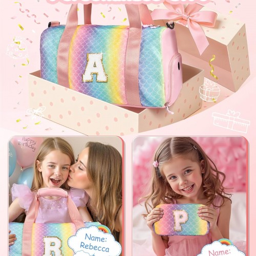 Graduation Gifts for Girls-Girl Gym Bag with Shoe Compartment, Kid Personalized Weekender Overnight Bags, Initial Travel Tote with Makeup Pouch, Gift Ideas for Niece Sister (Letter W)