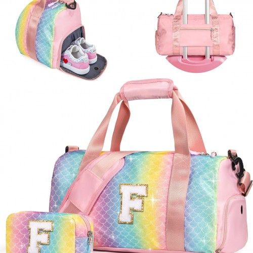Granddaughter Gift from Grandmom-Girl Gym Bag with Shoe Compartment, Kid Personalized Weekender Overnight Bags, Initial Travel Tote with Makeup Pouch, Easter Gifts for Teen (Letter C)