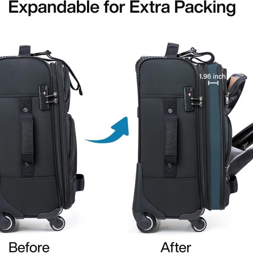 Hanke 3 Piece luggage Sets Softside Expandable luggage with Spinner Wheels TSA Lock,Travel Lightweight Luggage Sets,Black