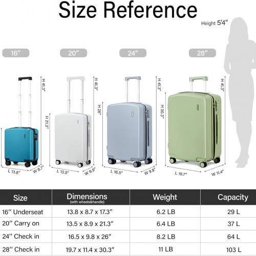 Hanke Hard Shell Luggage Sets 2 Pieces, Carry On and Checked Luggage Sets with Spinner Wheels, Durable PC Hardside Rolling Suitcase for Travel (20/28 Inch, Caribbean Blue)