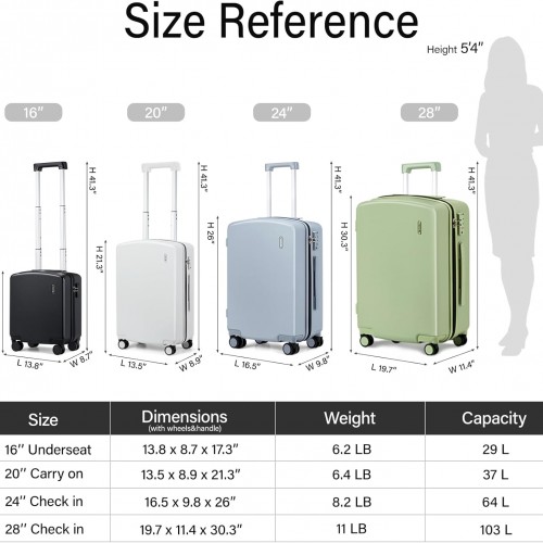 Hanke Hard Shell Luggage Sets 2 Pieces, Carry On and Checked Luggage Sets with Spinner Wheels, Durable PC Hardside Rolling Suitcase for Travel (20/28 Inch, Grey)