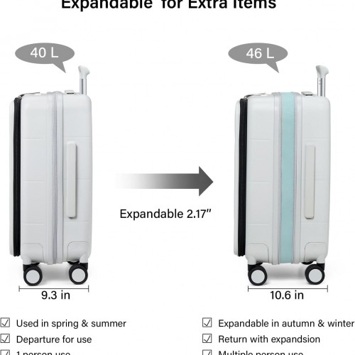 Hanke Hardside Expandable Carry On Luggage, 20 Inch Top Opening Trunk Luggages with Spinner Wheels, All-PC Hard Shell Carry-On Suitcase, Lightweight & TSA Airline Approved (Smoke White, 46L)
