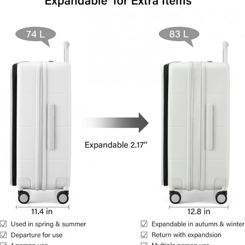 Hanke Hardside Expandable Checked Luggage, 24 Inch Top Opening Trunk Luggages with Spinner Wheels, All-PC Hard Shell Suitcase, Lightweight TSA Checked-Medium(Smoke White, 83L)