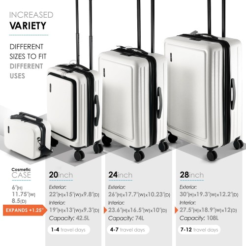 Hard Shell Luggage Sets with Spinner Wheels 4 Piece, Expandable Large Suitcases with TSA Lock, Travel Large Suitcase Set, White Luggage Set
