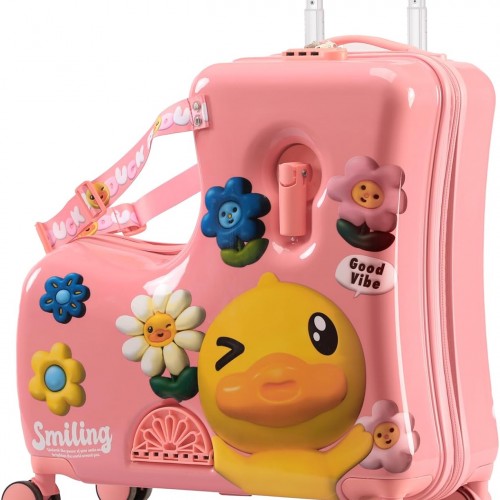 Hardshell Kids Ride-On Luggage with Scooter Suitcase – Carry-On Compliant with LED Light-Up Wheels – Fun and Functional Travel Companion for Children Ages 5–12
