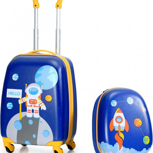 HONEY JOY Kids Luggage, 12″ Toddler Backpack & 16″ Travel Suitcase with Wheels, Lightweight Toddler Girls Suitcase, Durable ABS Hardshell, 2Pcs Carry On Luggage Set for Boys Girls