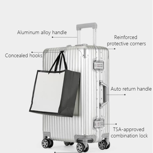 HotWay 20 Inch All Aluminum Carry On Luggage with Wheels, Hard Shell Zipperless Suitcase with TSA Locks, Silver Travel Luggage (22x14x9 Airline Approved)