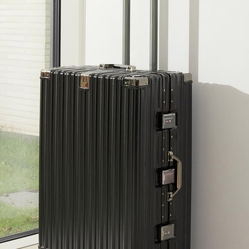 HotWay 24 Inch Aluminum Frame Luggage with Spinner Wheels, PC Hard Shell Suitcase with Cup Holder, Zipperless Luggage for Business Travel, Black