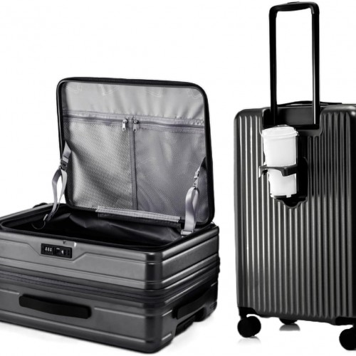 HotWay 26 Inch Expandable Checked Luggage with Cup Holder, Hardside TSA Approved Luggage with Spinner Wheels, Top Opening Suitcase For Travel, White