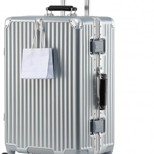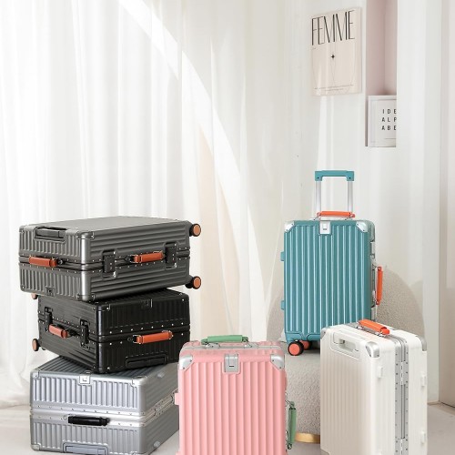 HotWay 26 Inch Hardside Checked Luggage with Leather Handle, PC Zipperless Suitcase with Spinner Wheels and TSA Locks, Lightweight Checked Luggage for Travel