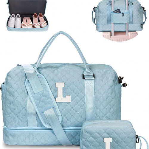 Initial Duffle Travel Bag, Personalized Weekender Bag with Shoulder Strap, Monogram Overnight Bag for Women Wet Pocket, Letter Travel Bag with Makeup Bag Gifts for family (Letter Z), Pink