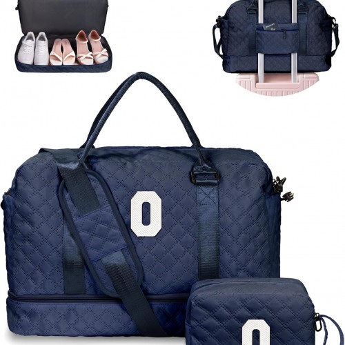 Initial Duffle Travel Bag, Personalized Weekender Bag with Shoulder Strap, Monogram Overnight Bag for Women Wet Pocket, Letter Travel Bag with Makeup Bag Gifts for family (Letter Z), Pink
