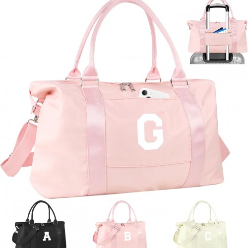 Initial Travel Duffel Bag Sports Gym Bag for Kids Teen Birthday Gifts,Beige Personalized Weekender Bag Carry On Dance Bags for Women Men,Waterproof Monogram Overnight Bag with Trolley Sleeve(Letter E)