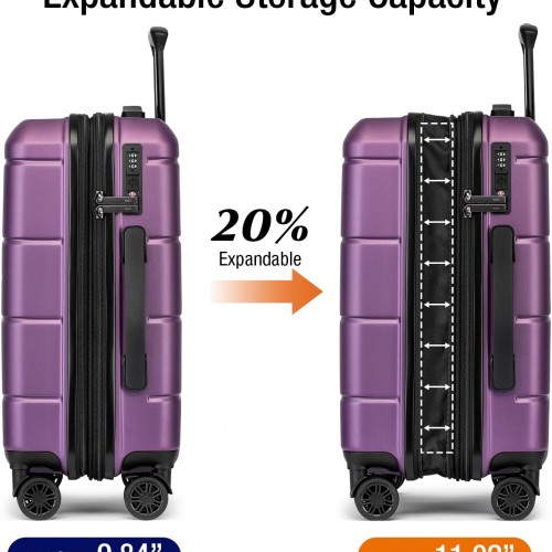 KYME Hardside Expandable Carry On Luggage 22x14x9 Airline Approved with TSA Lock Hardshell Carry On Suitcase with Wheels Small Travel Rolling 20 Inch Luggage with Cup Holder for Women Dark Purple
