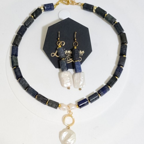 Lapis Lazuli and Freshwater Pearls Necklace Set