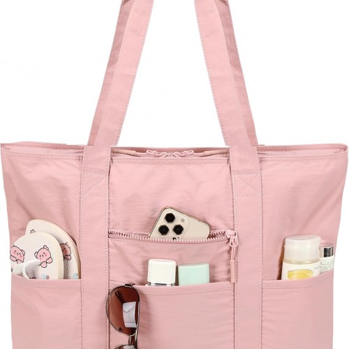 LEDAOU Beach Bags for Women, Beach Bags Waterproof Sandproof, Packable Beach Tote Bag with Zipper Travel Sports